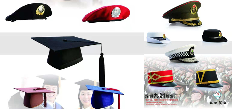 @深圳市九洲帽業制造有限公司:我們是一家實力雄厚的專業制帽企業,主要特色產品是世界各地的軍警帽及保安大蓋帽。
