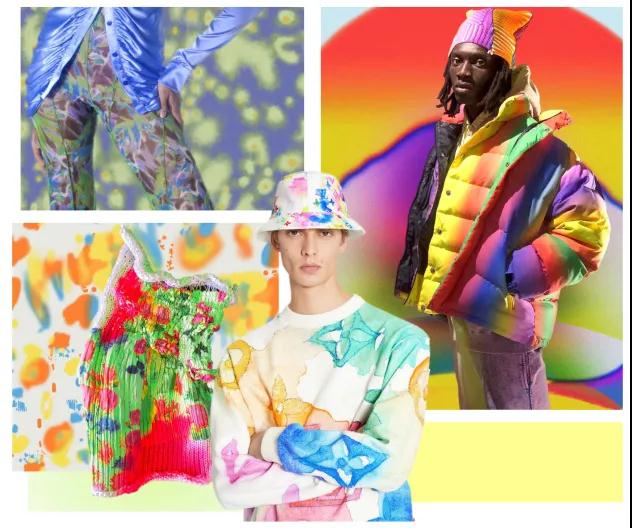 藝術(shù)主題下經(jīng)典重置、印象藝術(shù)和熒光印記將模糊邊界感的色光主題圖案分別進(jìn)行復(fù)古和潮流呈現(xiàn)。NFT風(fēng)潮帶來(lái)數(shù)碼藝術(shù)是值得關(guān)注的圖案形式,虛擬自然主題帶我們一起探討時(shí)尚的更多可能性。
