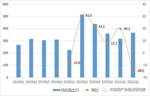 去年一季度受疫情爆發影響,我國紡織品出口呈現2015年以來的季度低點,出口僅269.0億美元;到二季度受全球防疫物資需求猛增影響,紡織品季度出口實現了歷史高點,達到514.3億美元。在基數效應作用下,今年二季度紡織品出口下降28.5%,但從***數值看,今年二季度紡織品出口367.9億美元,仍高于疫情前2019年的每個季度。