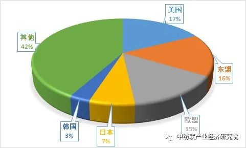 紡織品服裝出口市場上半年占比情況